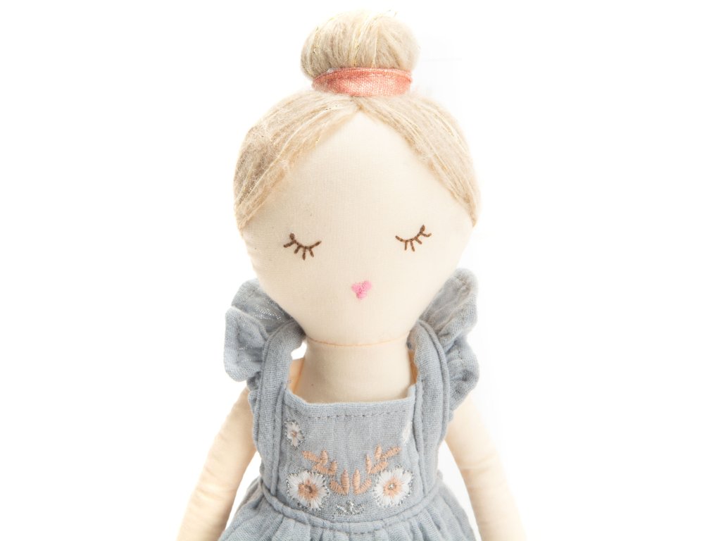 Krásna bábika Lucie so slušivým drdolom a prenádherným oblečkom s vyšívanými kvietkami bude skvelým spoločníkom pre malé dievčatká. Vďaka príjemnému materiálu je možné s bábikou príjemne odpočívať alebo zaspávať. Bábika je vyrobená z 80% polyesteru a 20% bavlny.