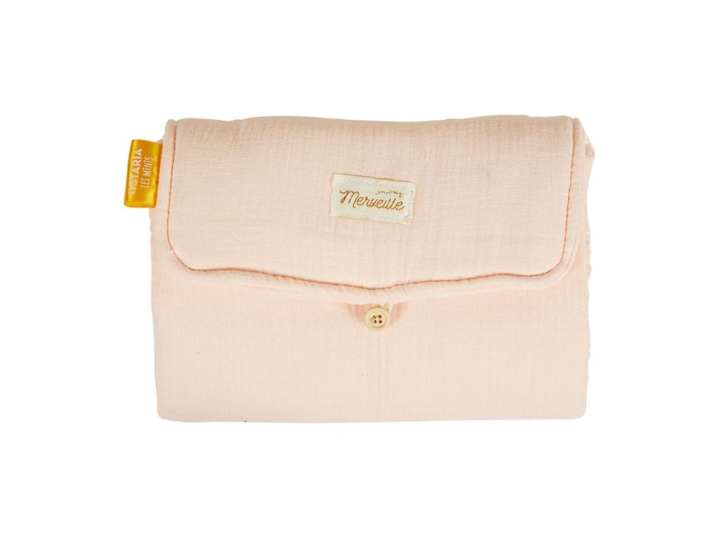 Táto prenosná prebaľovacia podložka je vyrobená z mäkkej a pohodlnej bavlny a má krásnu ružovú farbu. Podložka je skladacia a má zapínanie na gombík, čo uľahčuje jej prenášanie a skladovanie. Vďaka kompaktným rozmerom je ideálna na cestovanie alebo použitie mimo domova. Podložka poskytuje pohodlný a hygienický priestor na prebaľovanie dieťaťa kdekoľvek. Perfektné pre rodičov, ktorí hľadajú praktické a štýlové riešenie na prebaľovanie na cestách.