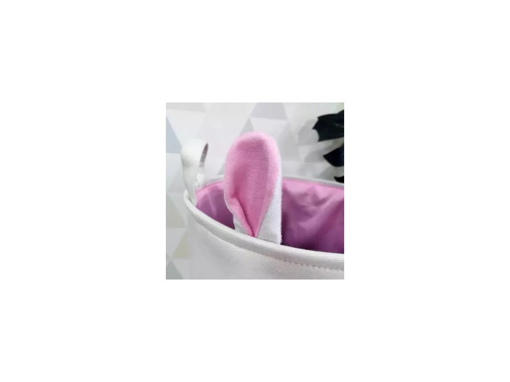 Rozkošný zajačí kôš s uškami ihneď premení detskú izbičku o trošku veselejšie miesto. Jeho využitie môže byť napríklad na uloženie hračiek či dek. Vďaka dvom úchopkám je kôš ľahko prenosný a z upratovamia sa od teraz stáva minútová záležitosť.